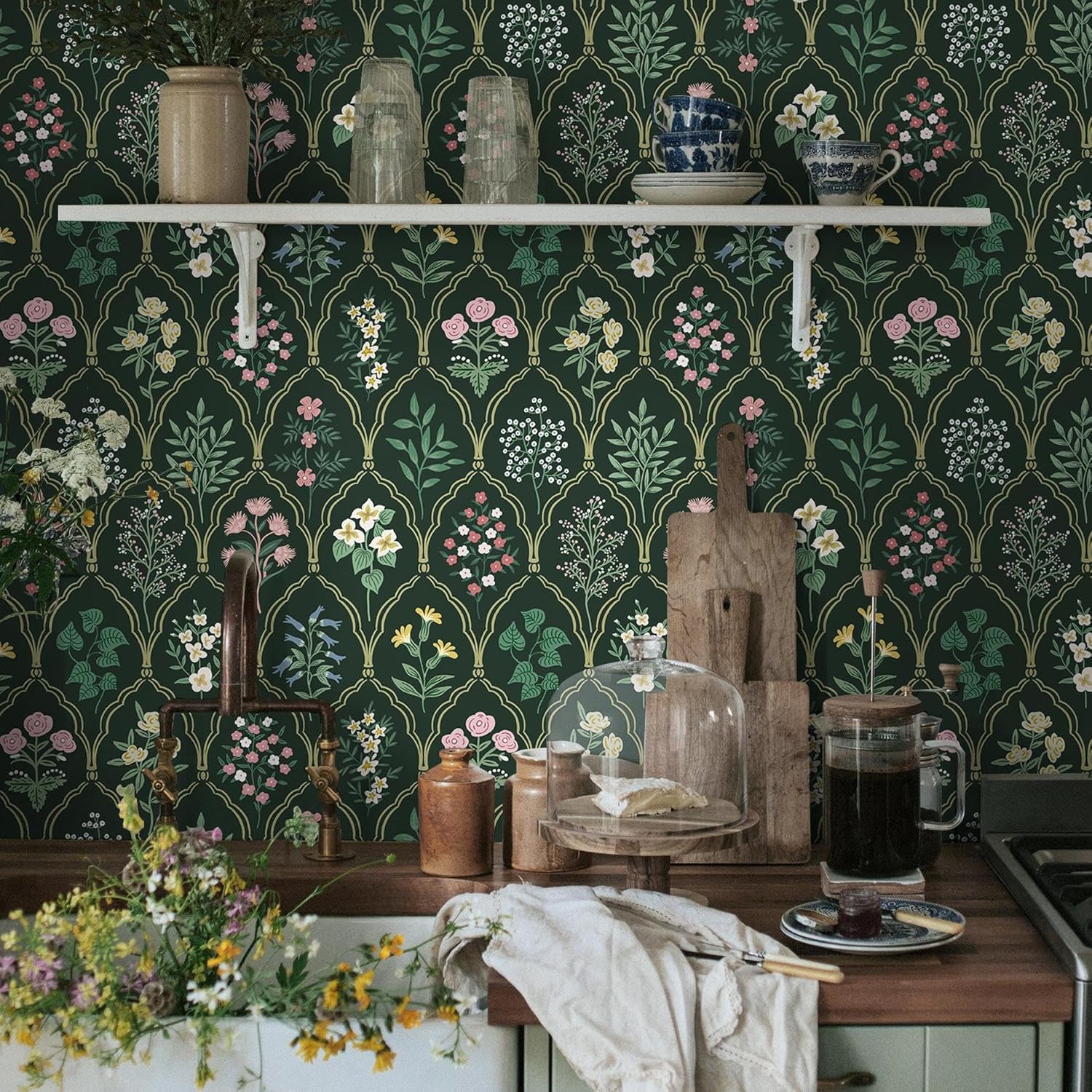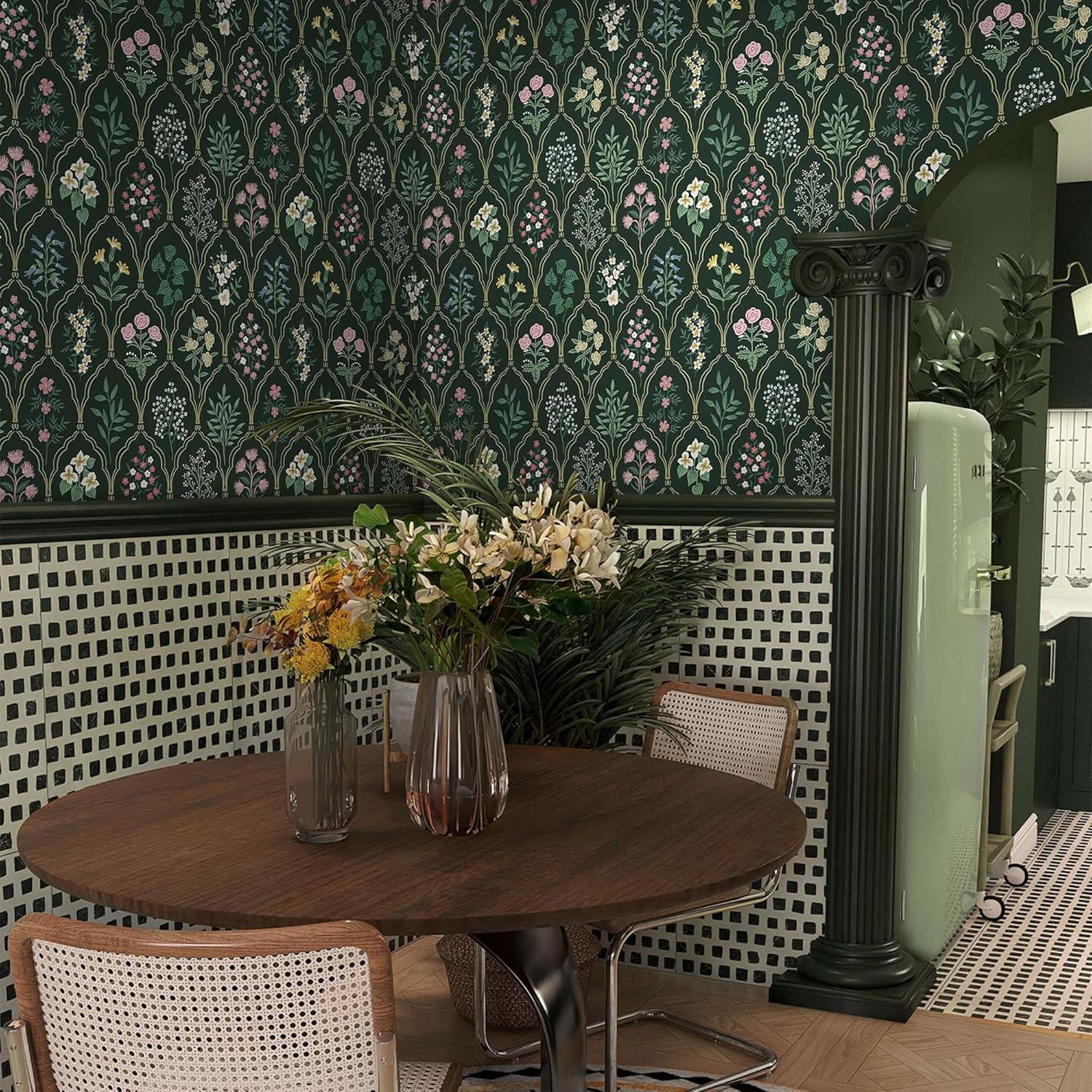 Enhance the charm of your interiors with this Floral Contact Paper Vintage Wallpaper in Green and Pink hues. The intricate floral design adds a touch of elegance, making it ideal for various settings, from kitchens to bedrooms and cabinets.