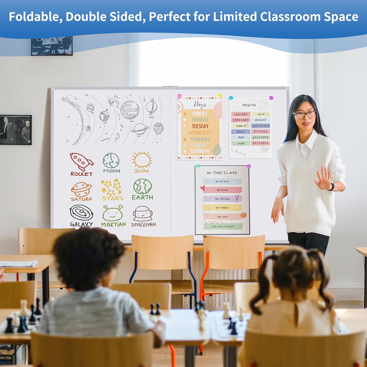 Crafted with a durable and foldable aluminum frame, this hanging whiteboard offers a sleek and modern look while providing a sturdy surface for writing, drawing, and displaying information. The magnetic feature allows you to easily attach notes, reminders, and other documents to the board for added convenience.