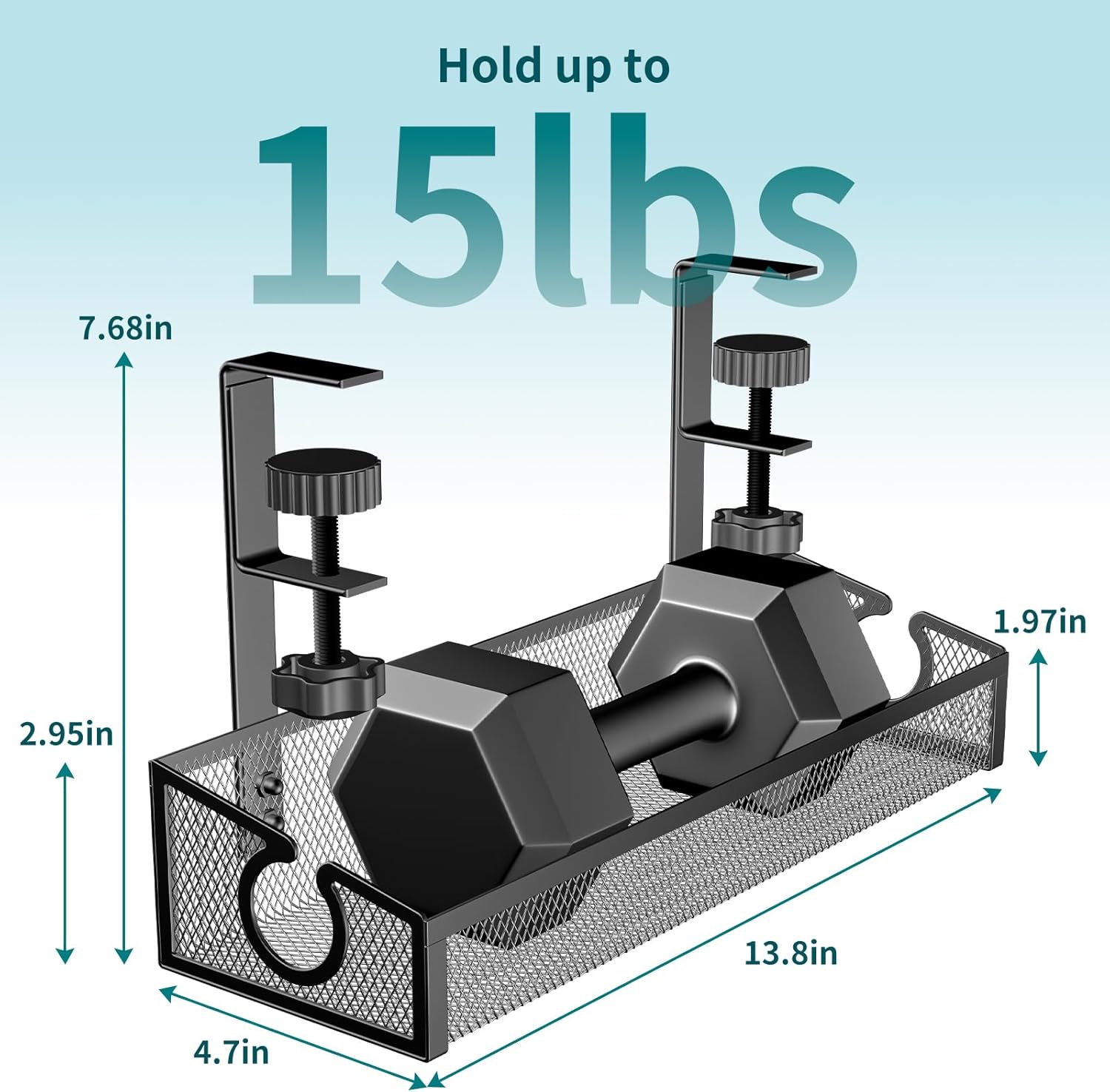Introducing the Under Desk Cable Management Tray in sleek black, the perfect solution for keeping your workspace organized and clutter-free. This innovative no-drill organizer comes with a convenient clamp for easy installation, making it ideal for managing wires, PC cords, and other accessories in your office or home.